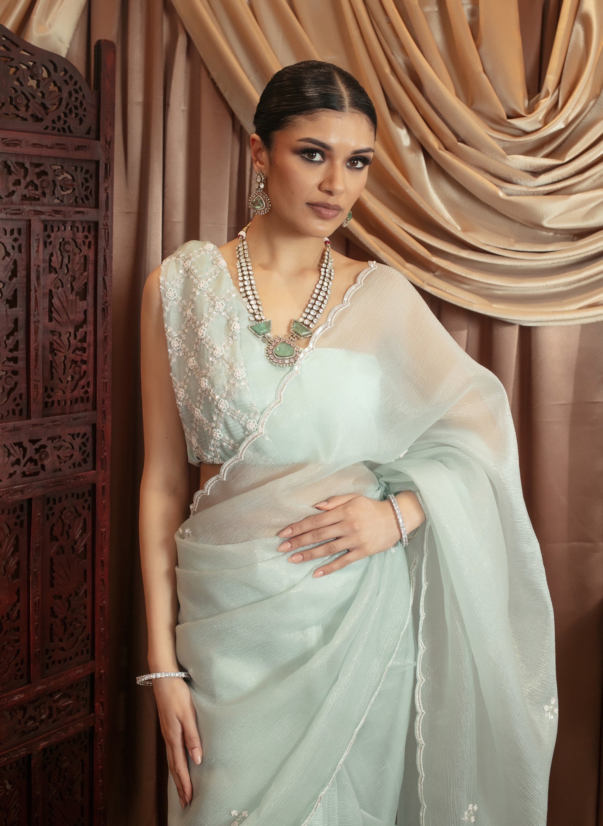 Luxury Crushed Silk Pearl Beadwork Embroidery Sari DF371