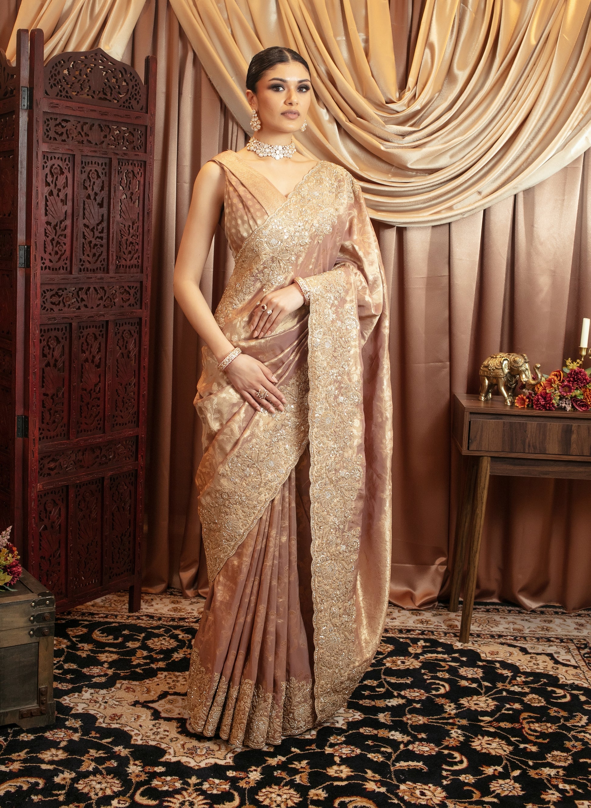 Luxury Tissue Silk Beadwork Embroidery & Diamante Sari VC096
