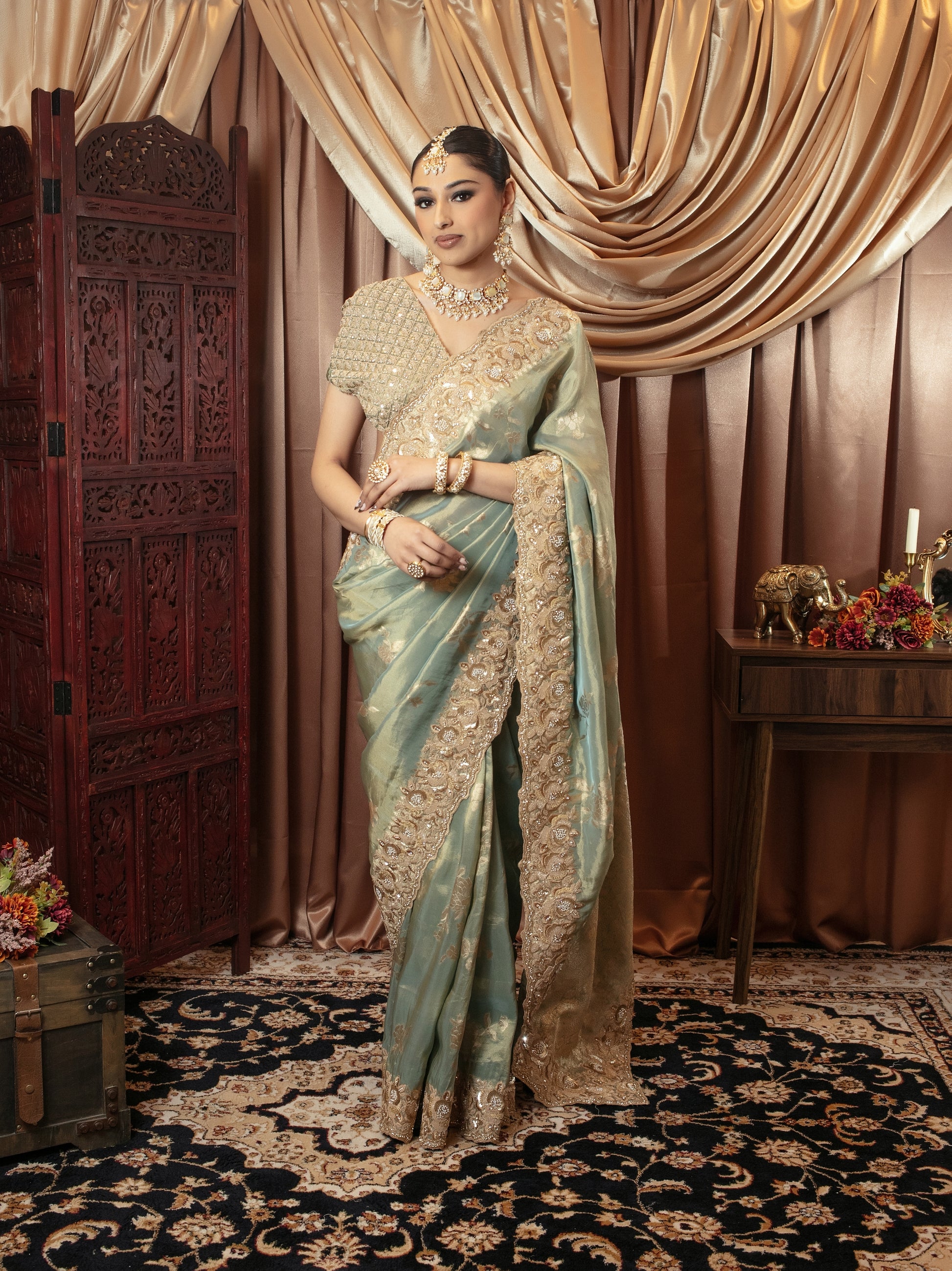 Luxury Tissue Silk Beadwork Embroidery & Diamante Sari 7191/VC097
