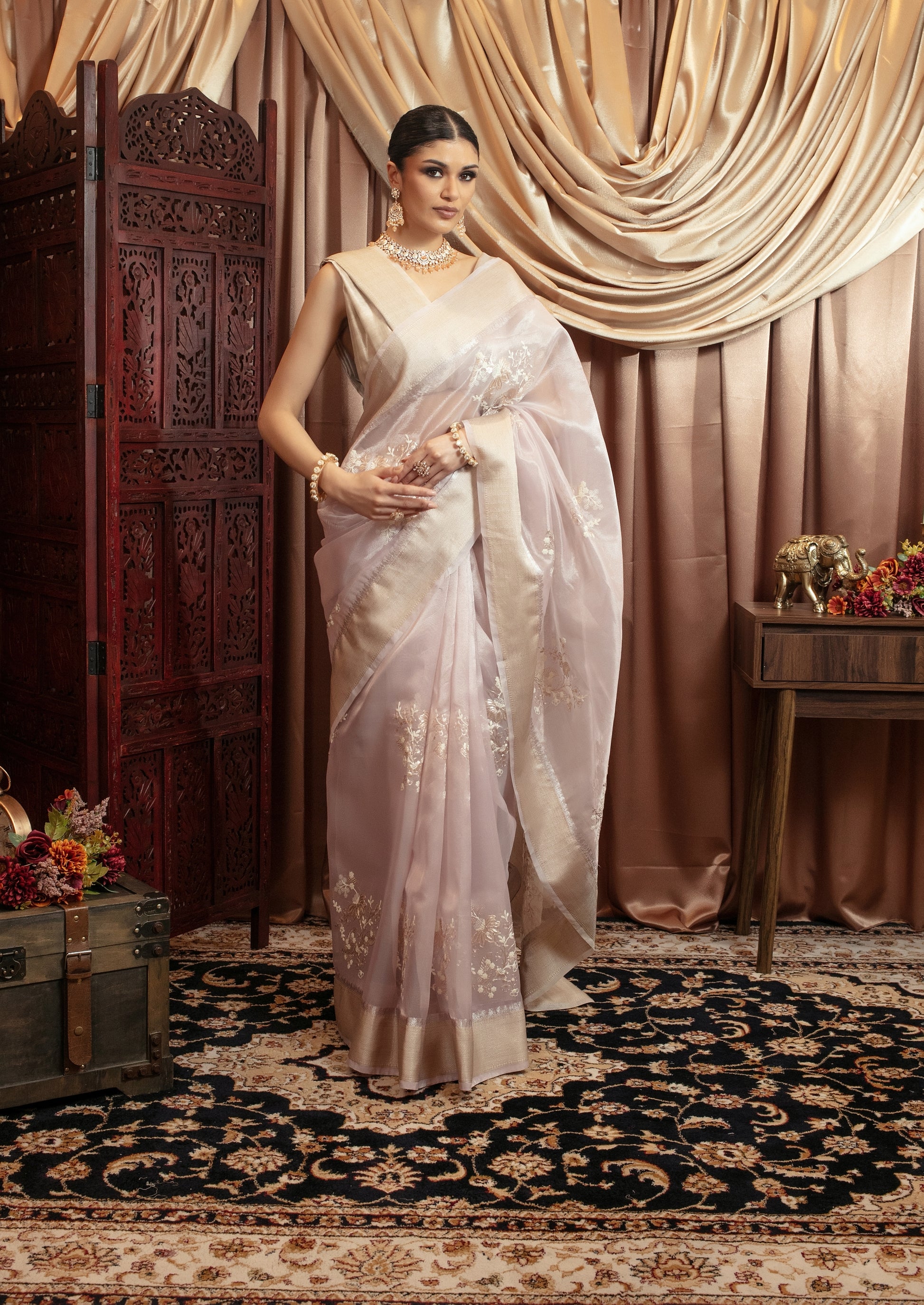 Luxury Tissue Silk Pita Embroidery Sari DF377