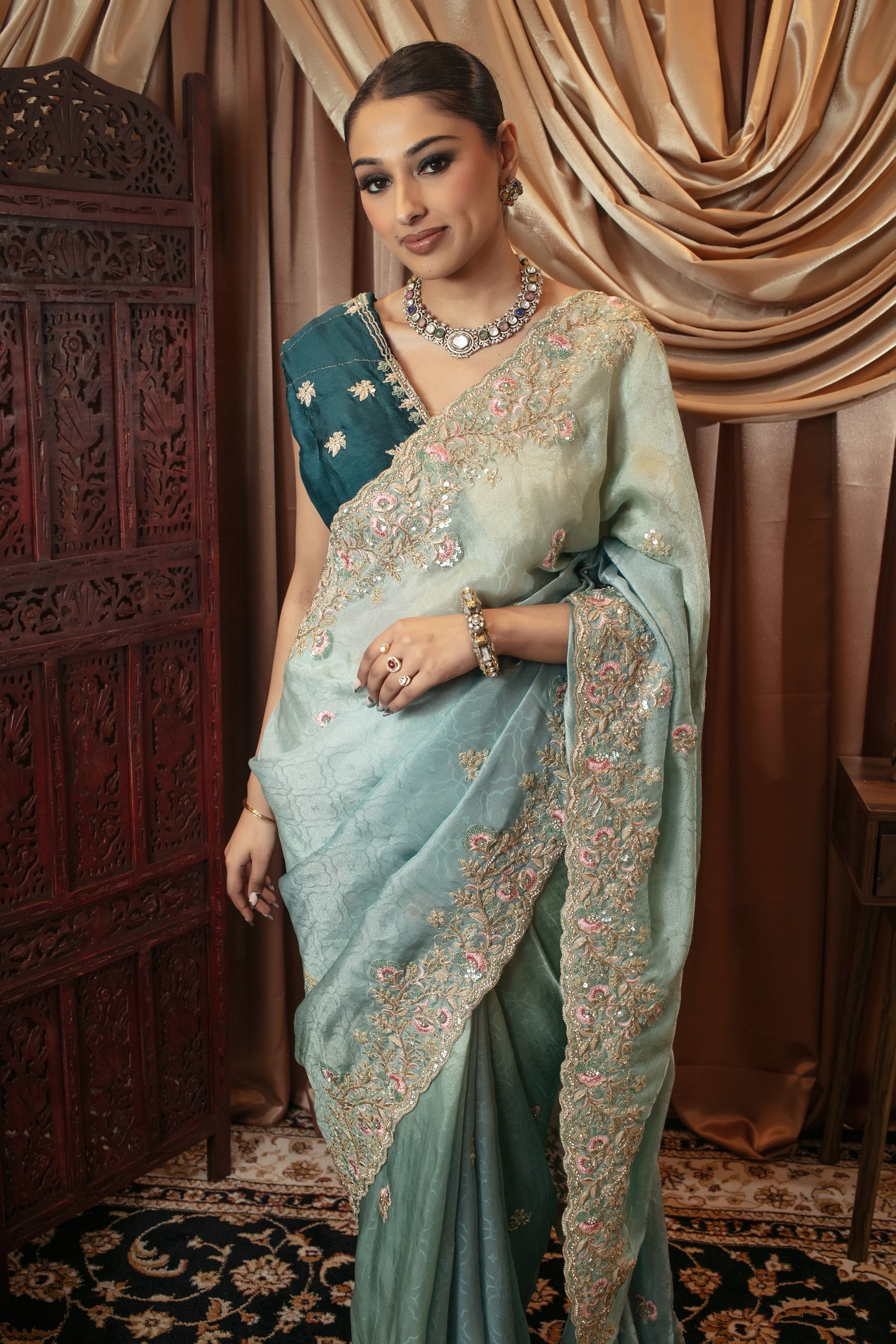 Luxury Viscose Silk Diamante & Threadwork Embroidery Sari VC0102
