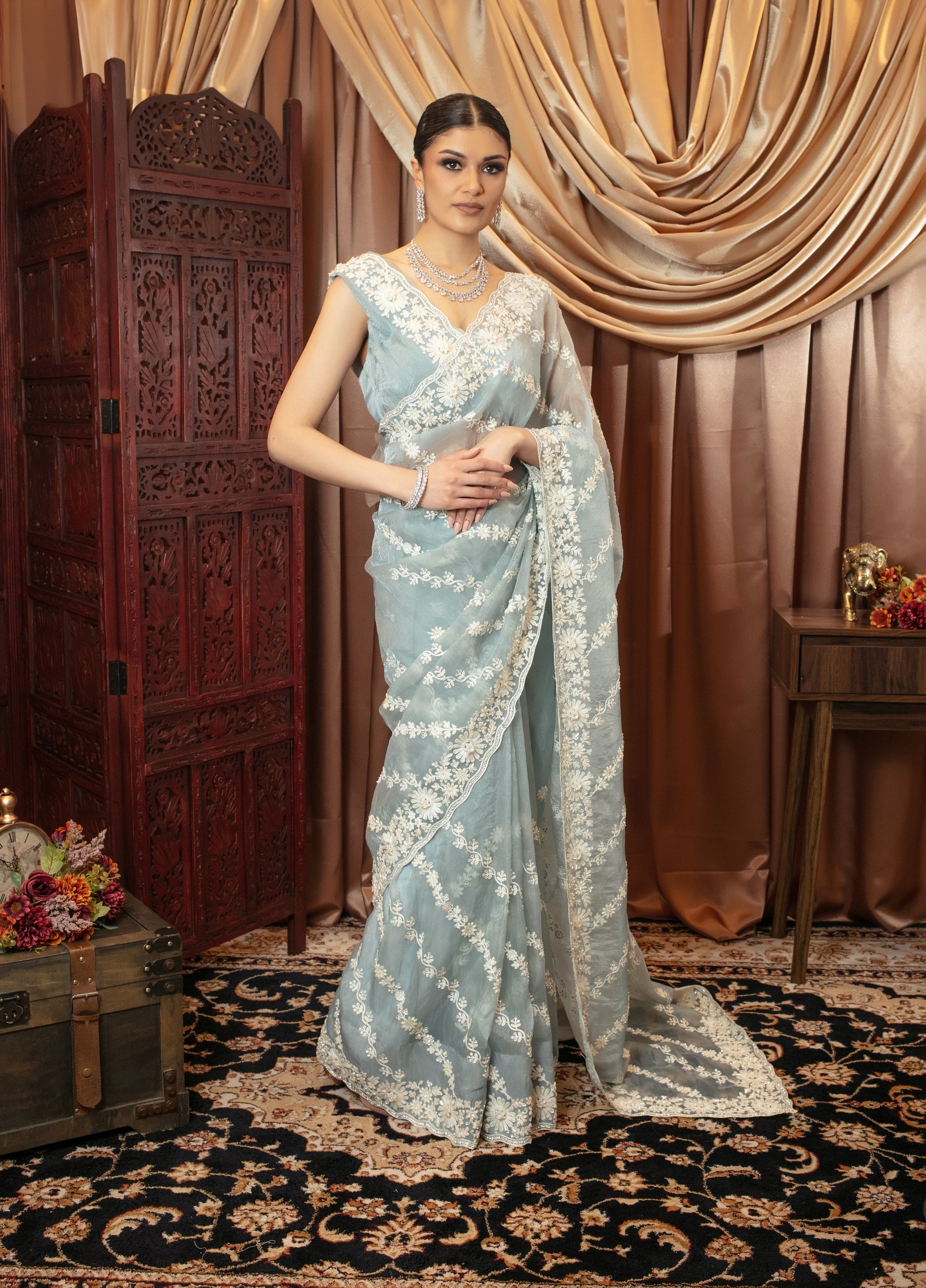 Premium Organza Diamante & Beadwork Embroidery Sari 490 GC0109