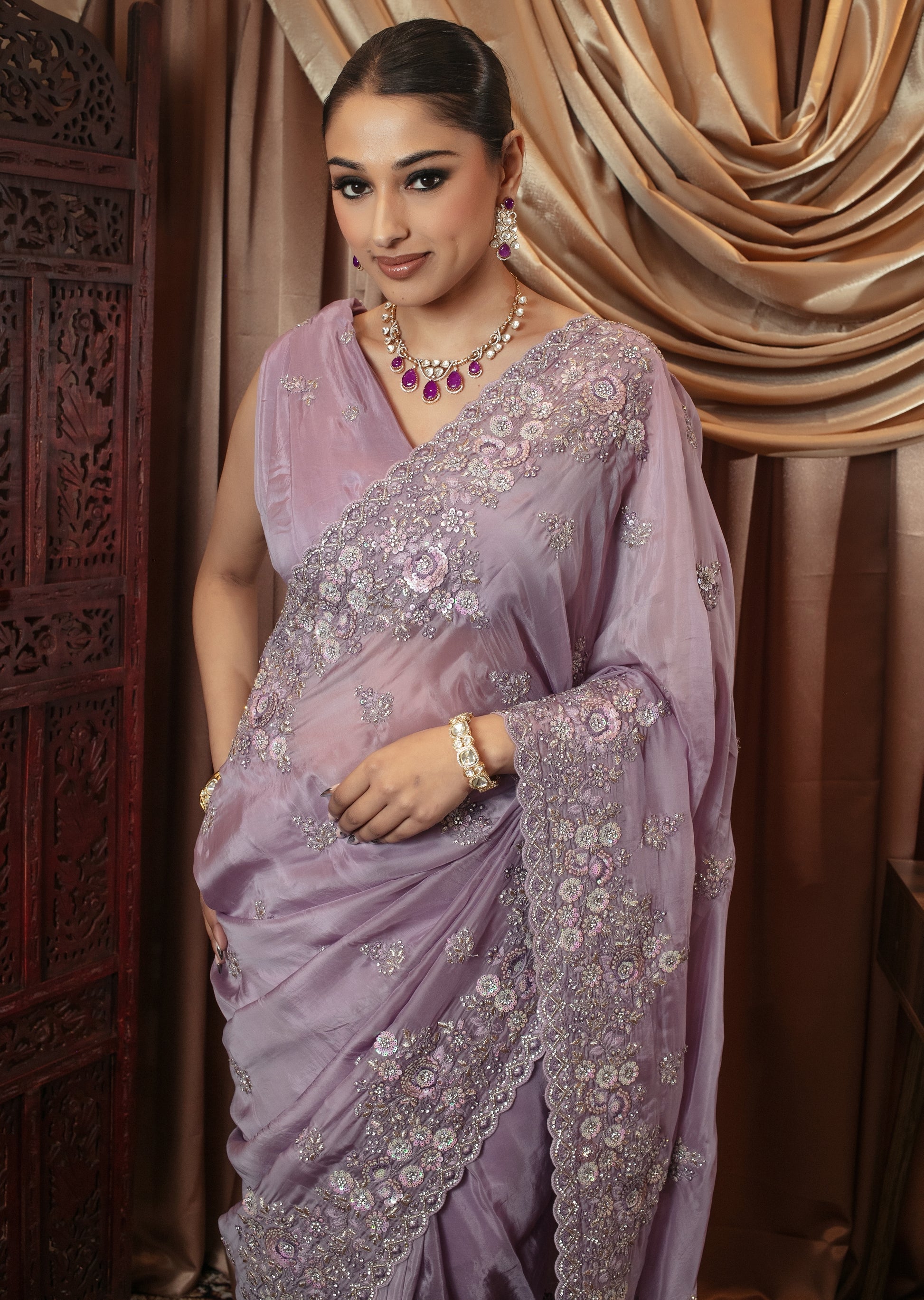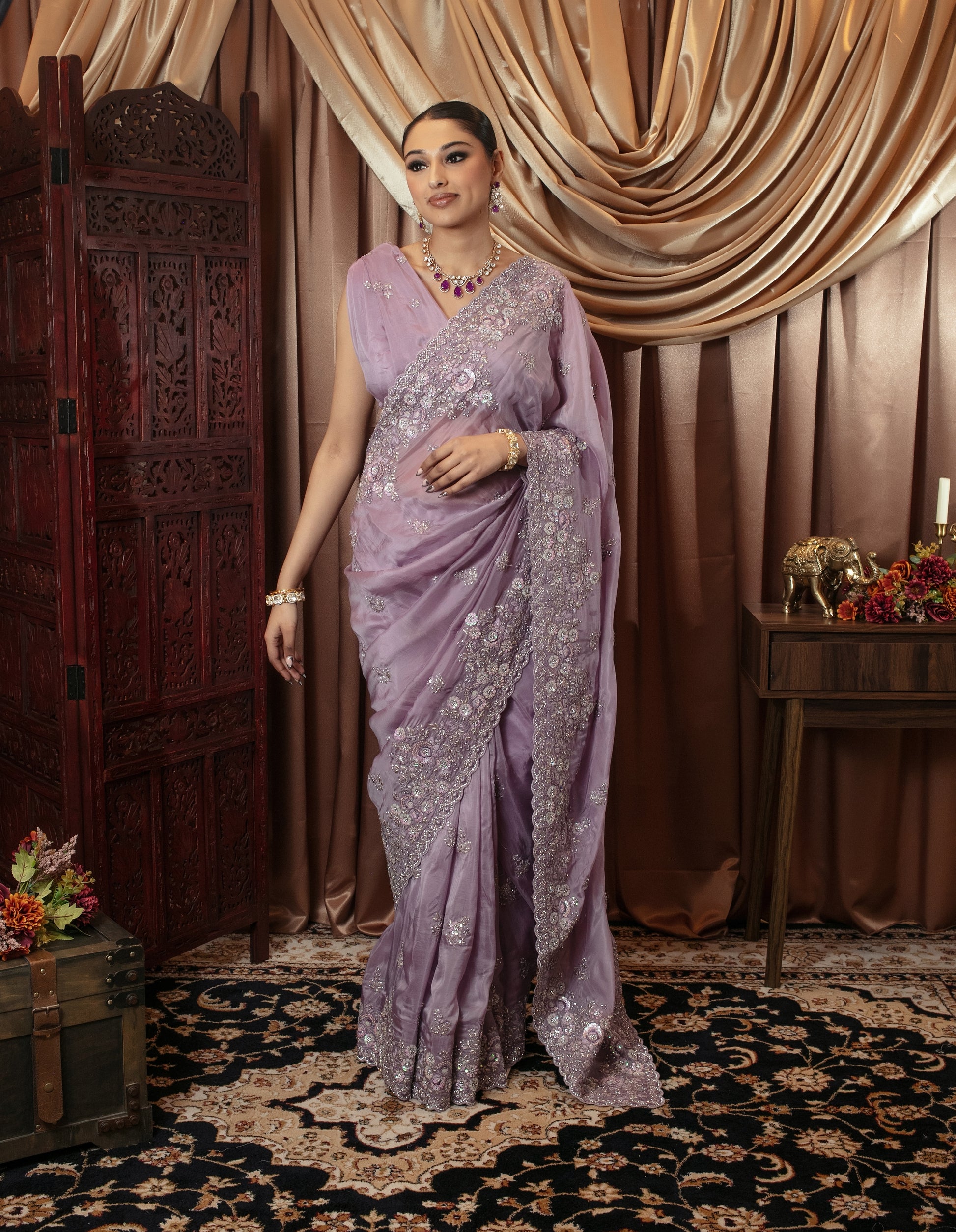 Premium Silk Diamante & Threadwork Embroidery Sari 6854 VC0100